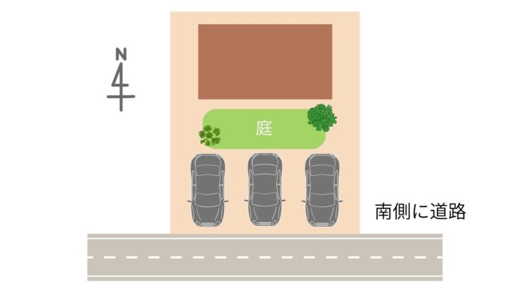 南面の土地とは、敷地の南側に道路が接している土地のことです。住宅を計画する際、建物を北側に寄せて配置することで、南側に広いスペースを確保しやすくなります。