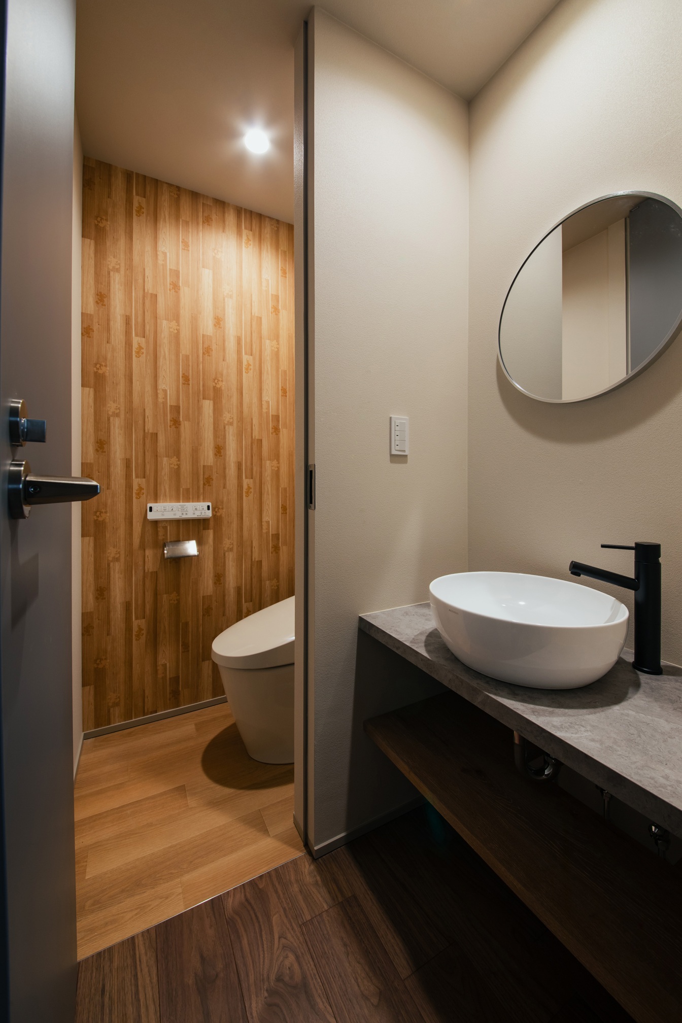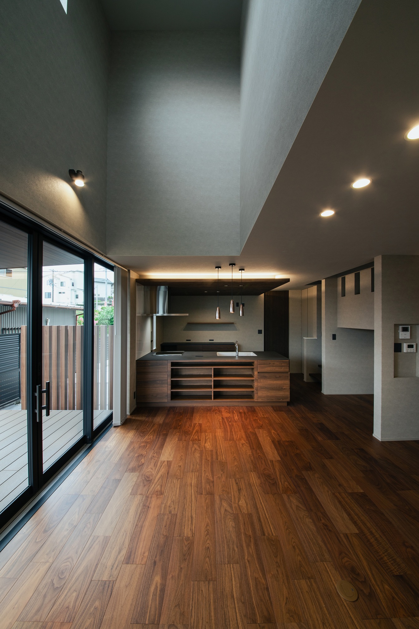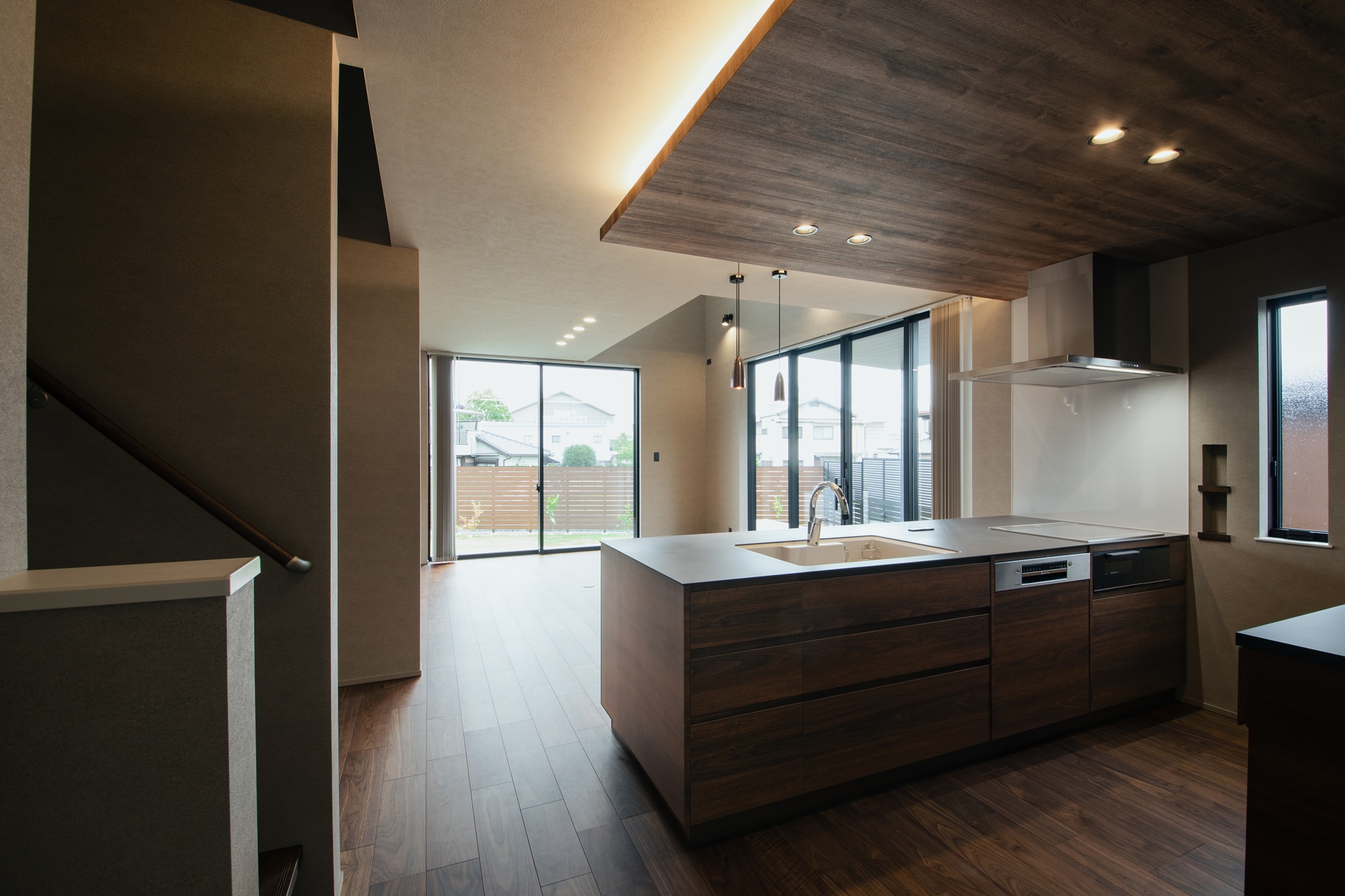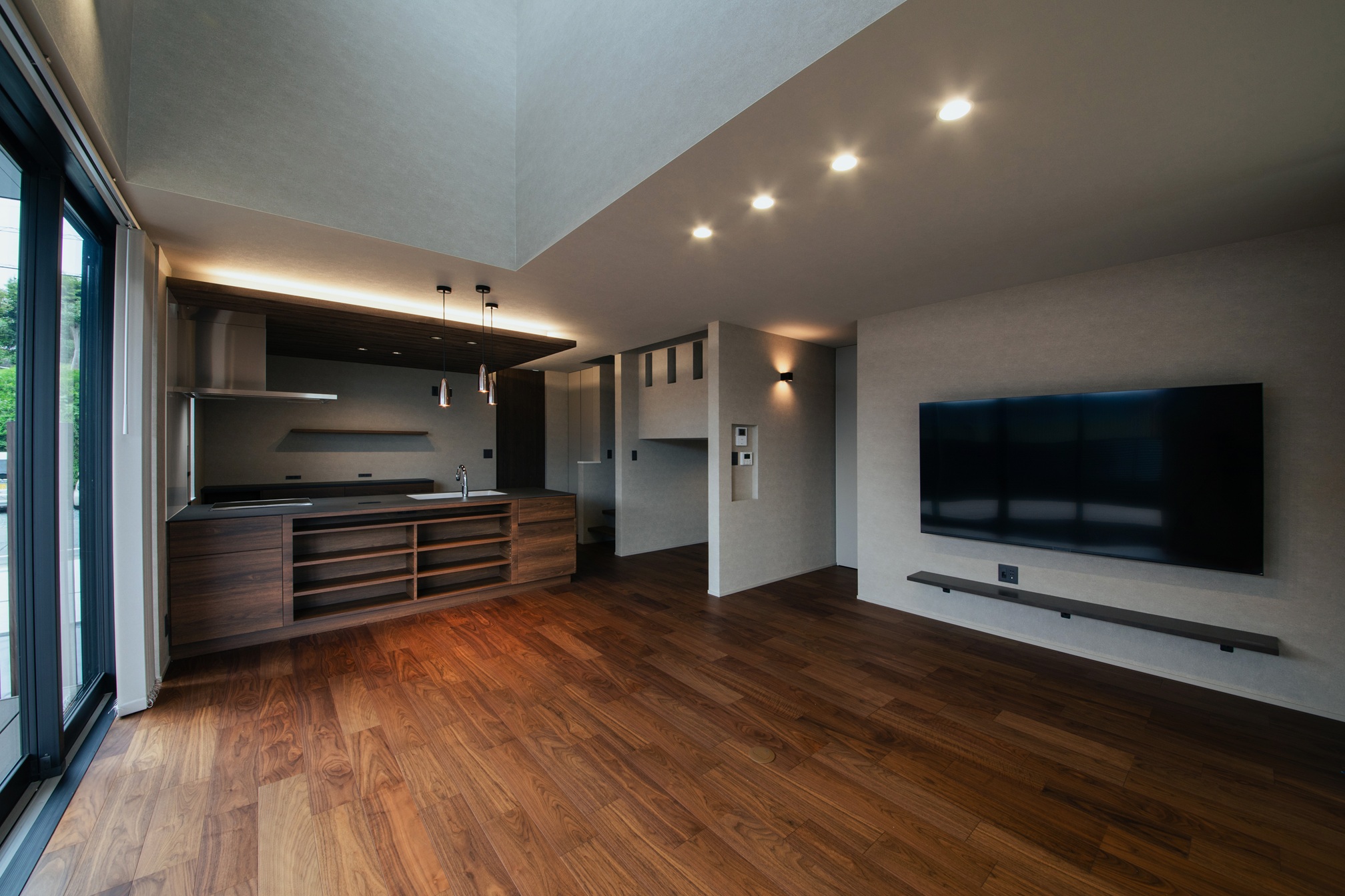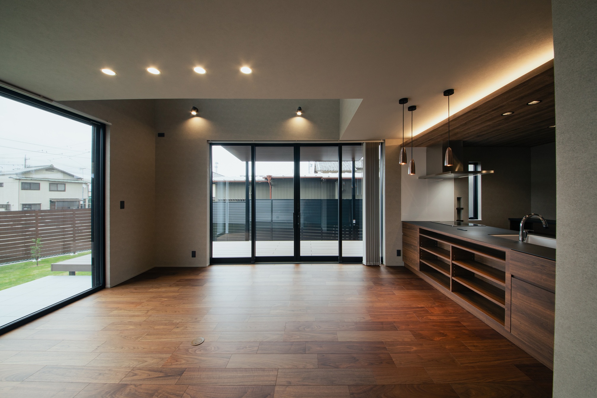 室内はウォールナットの床材と少しトーンを落とした内装で落ち着きのある大人な優雅さを感じる空間です。