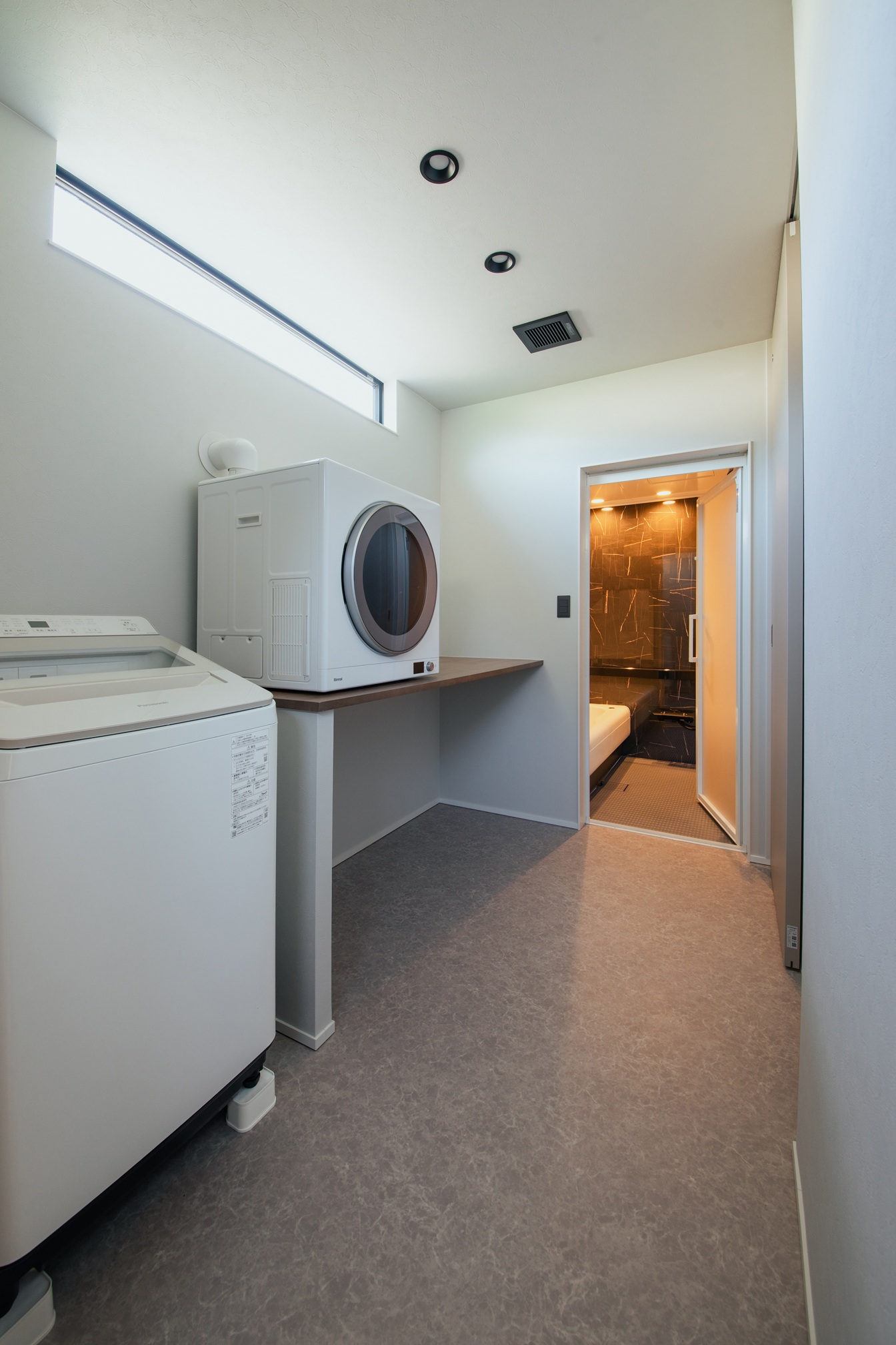 また、くつろぎの時間を生むタタミコーナーをはじめ、乾太くんを備えた家事動線、家電収納を組み込んだカップボード、さらにはルンバ基地まで計画的に配置。美しさと機能性を両立させ、住まうほどに心地よさを実感できる一邸となりました。